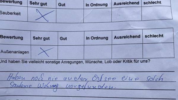 Die aufwendigen Bemühungen, unsere Ferienobjekte für die neuen Gäste vorzubereiten, werden auch mal durch ein entsprechendes Feedback belohnt.